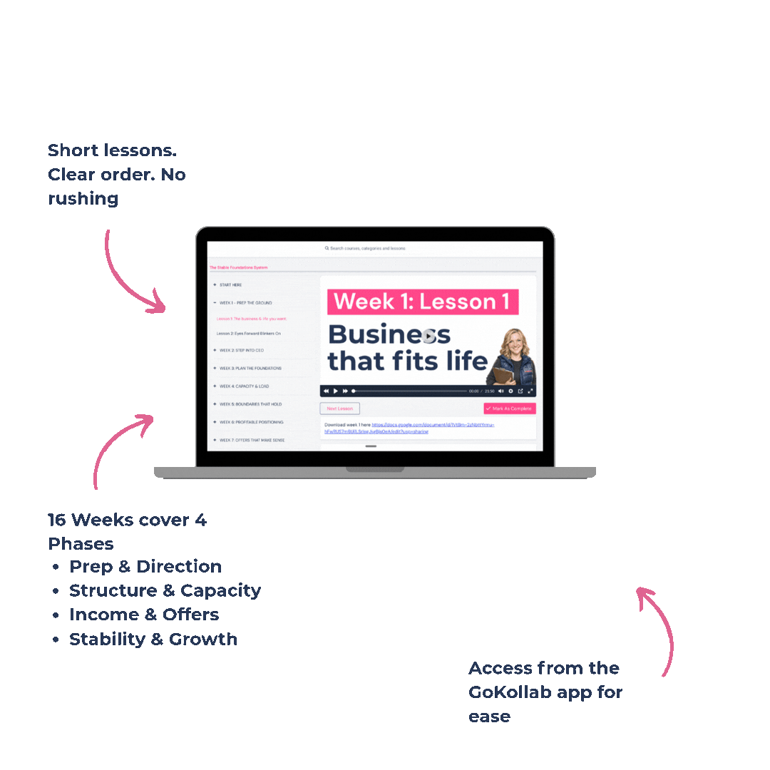 Alongside the weekly calls, you get full access to the Stable Foundations System — a structured 16-week framework for building a stable equine business in the right order.