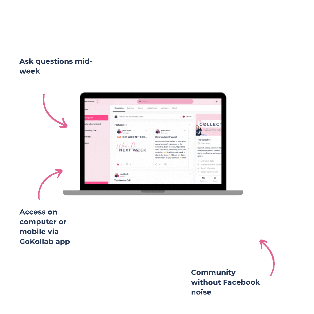 The Collective is weekly mentoring and structured support for equine business owners who want their business to actually move — not just feel busy.