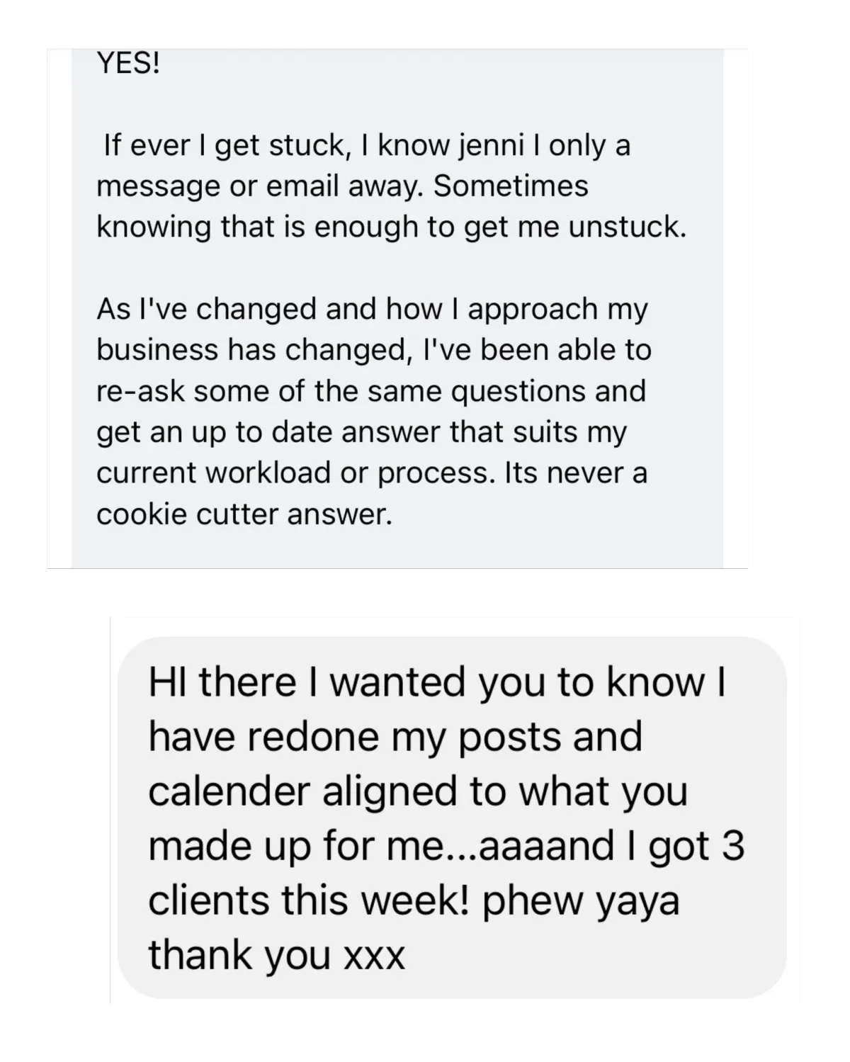 With Jenni’s simple systems and accountability, she built routines that made marketing feel doable again — and started seeing direct results.